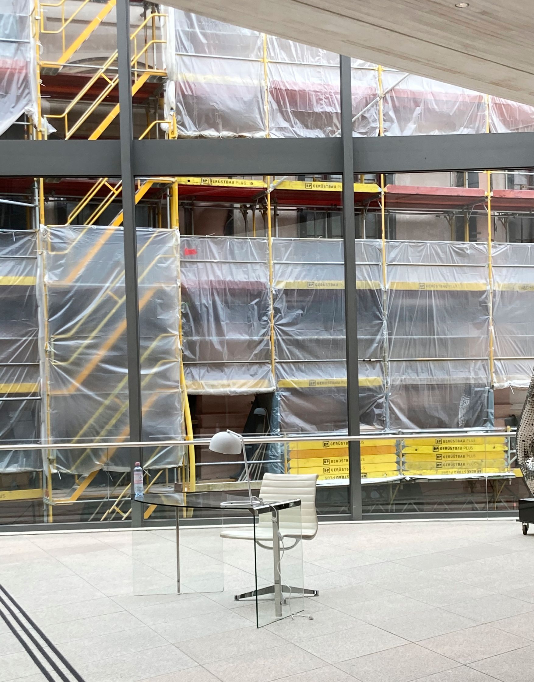 Set design developed for a fashion production within the German Historical Museum during pandemic restrictions, adapting an institutional space into a temporary studio environment.